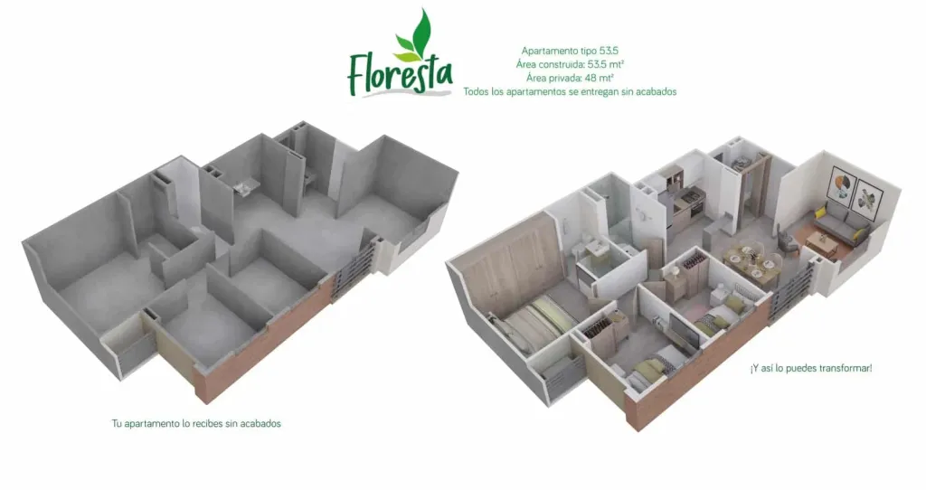 Gran Lanzamiento de Floresta, encuentra un proyecto de apartamentos en conjunto cerrado, conformado por torres de 5 y 10 pisos. Disfruta de todas las zonas sociales que hemos diseñado para ti y tu familia como piscinas para niños y adultos, salas premium, gimnasio, zona de juegos de niños y más. Aprovecha nuestro amplio plazo de cuota inicial.