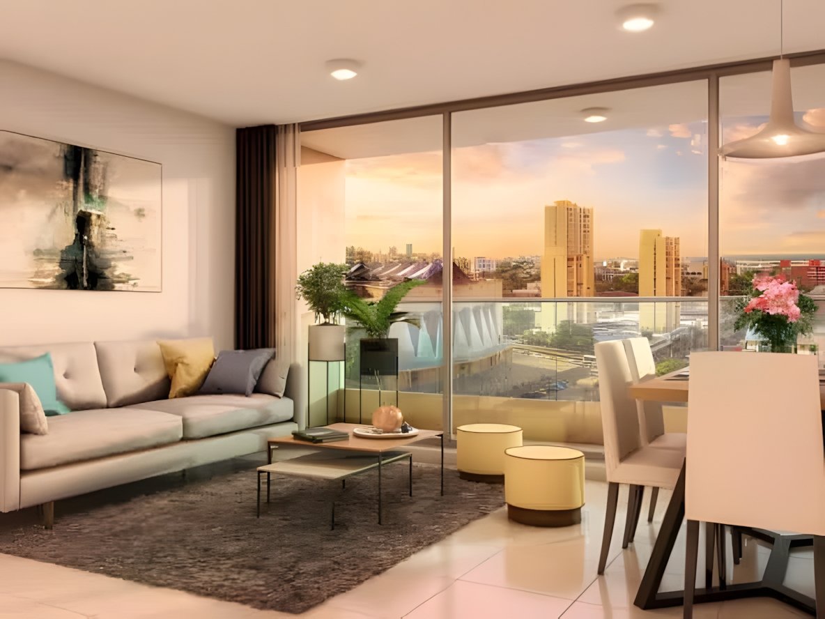 Un proyecto diseñado con las ventajas de tenerlo todo alrededor. 732 apartamentos construidos con características que encierran una distribución ideal, exclusivas zonas de bienestar y una torre con 732 parqueaderos privados y 146 estacionamientos para visitantes. Vías de acceso principales que favorecen tu movilidad: Calle 53 entre carrera 44 y 45. El proyecto está diseñado con las ventajas de tenerlo todo a su alrededor, cuenta con características que encierran una distribución ideal y exclusiva en todas sus zonas y espacios que brindan confort y bienestar para toda tu familia. Su zona social cuenta con gimnasio, juegos infantiles, piscina familiar, salón de eventos, zonas verdes, entre otras amenidades que te regalarán nuevas experiencias. Su ubicación es céntrica. Sitios de interés cercanos: – Homecenter – Plaza de la Paz – C.C. Portal del Prado – Colegio María Auxiliadora – Universidad Libre – Universidad Santo Tomás – Catedral Metropolitana María Reina de Barranquilla – Estación La Catedral de Transmetro.